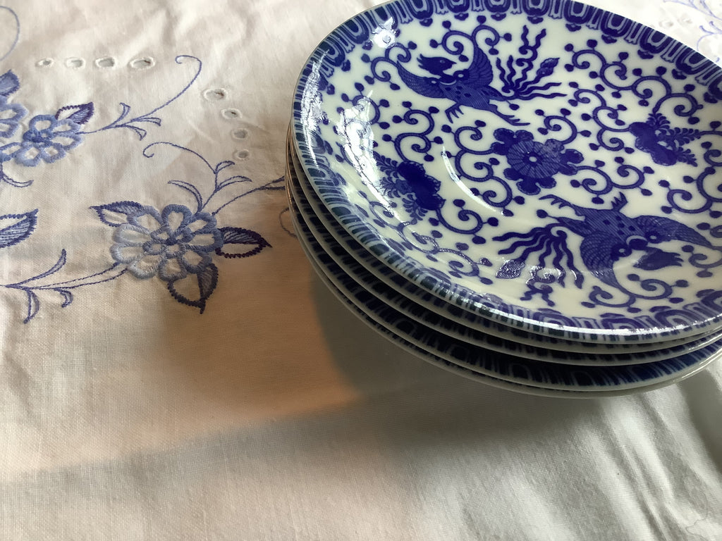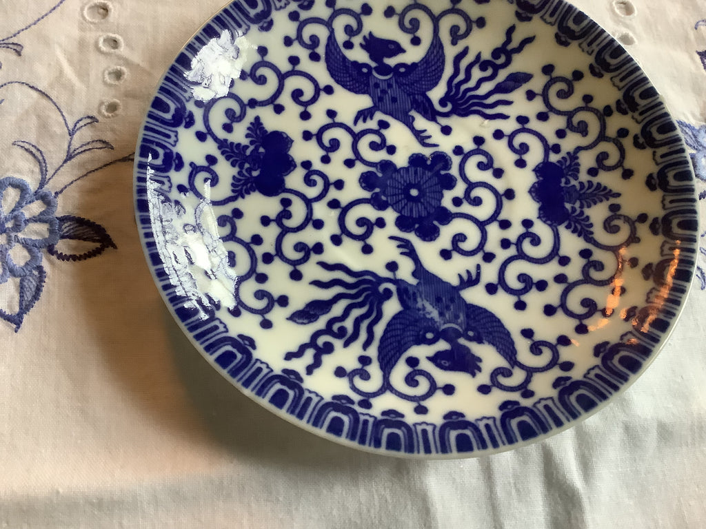 Japanse porseleinen bordjes versierd met Phoenix-vogels. Leuk om te gebruiken als bobnbon schaaltje, theetip, gebaksbordje.