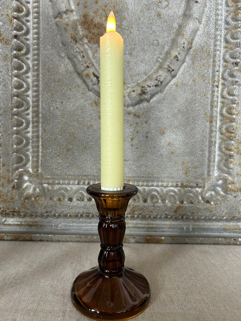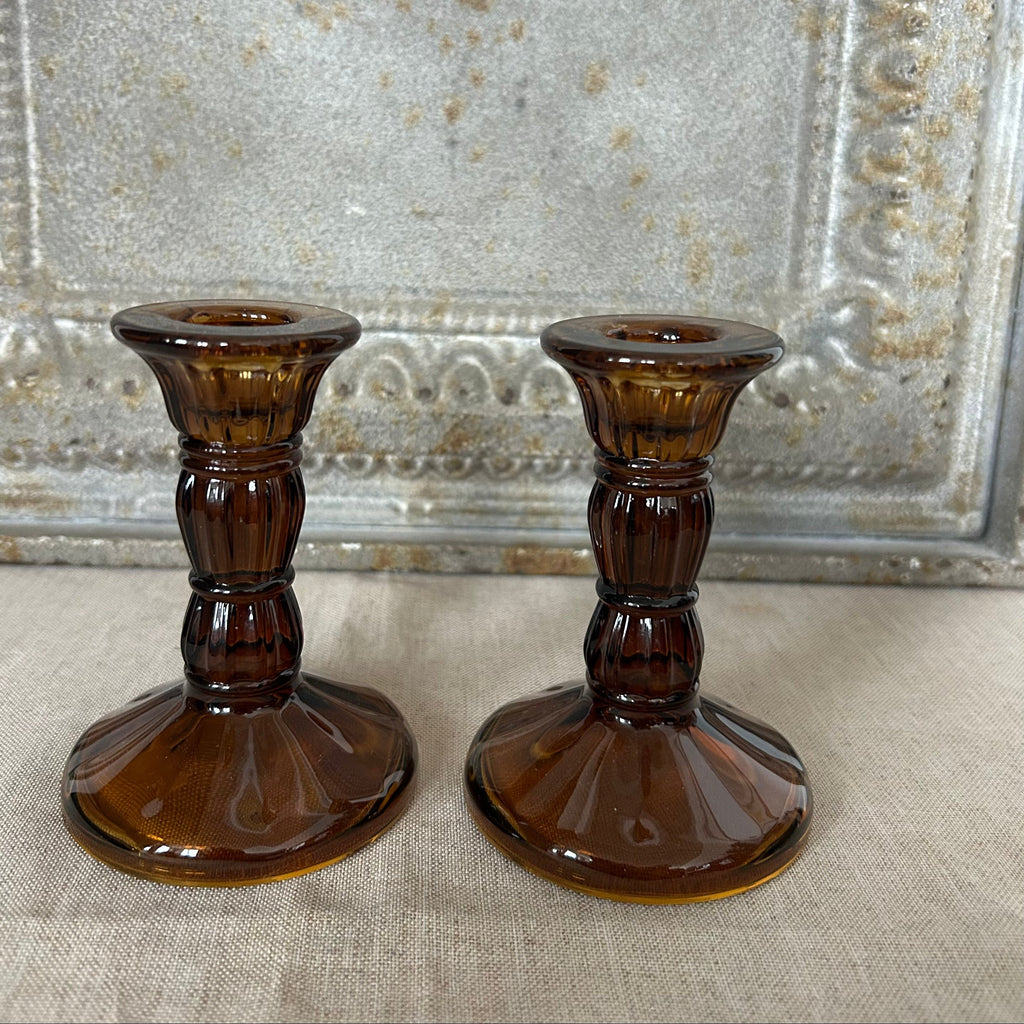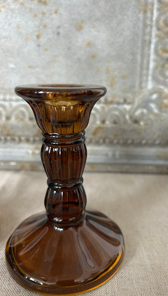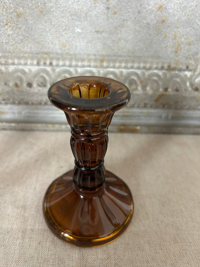 Klein elegant kandelaartje in klassieke vorm van mooi dik (licht)bruin glas.