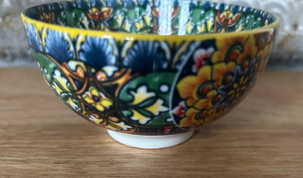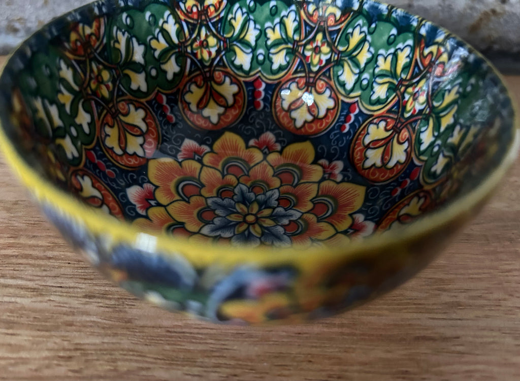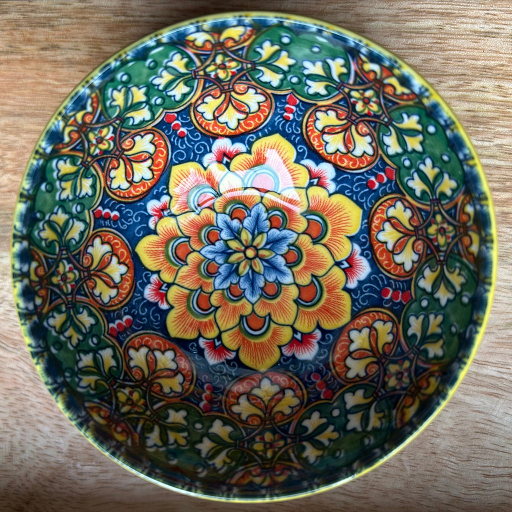 Een kleurrijk porseleinen schaaltje uit Zuid-Afrika met florale motieven.