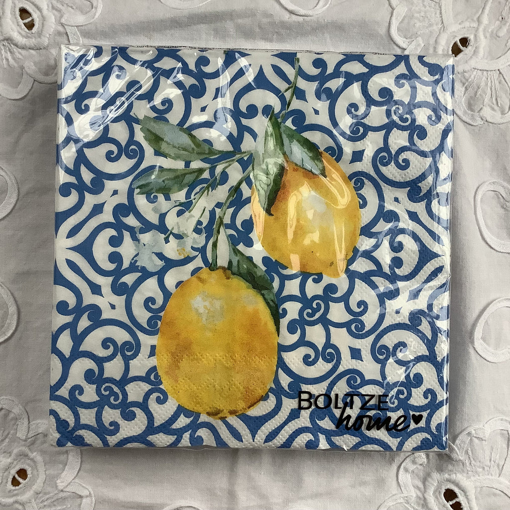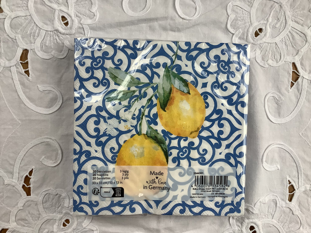 Servetten blauw/wit met citroenen.
