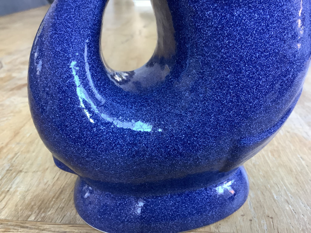 Aardewerk vaas/karaf in de vorm van een sierlijke vis in jeanskleur blauw. Als vaas óf waterkaraf te gebruiken.